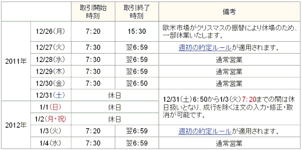 マネースクウェア・ジャパンのトラリピ(R)の年末年始の営業は以下の通り。