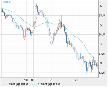 75.1円~84.6円の間に0.5円間隔 1万通貨の取引、50銭で利益確定 20本