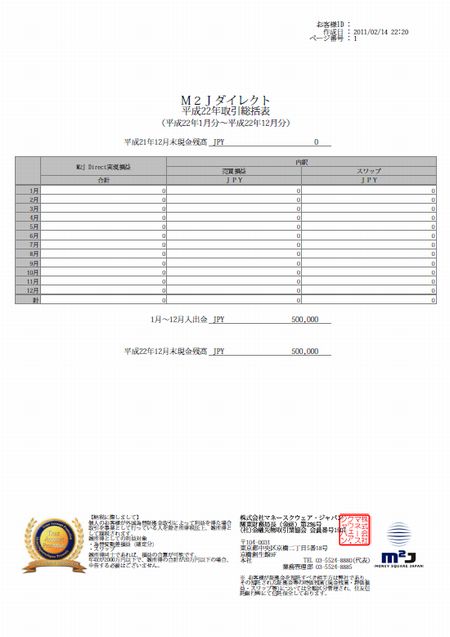 このM2J年間取引総括表に手数料の記載があってもいいのにね。